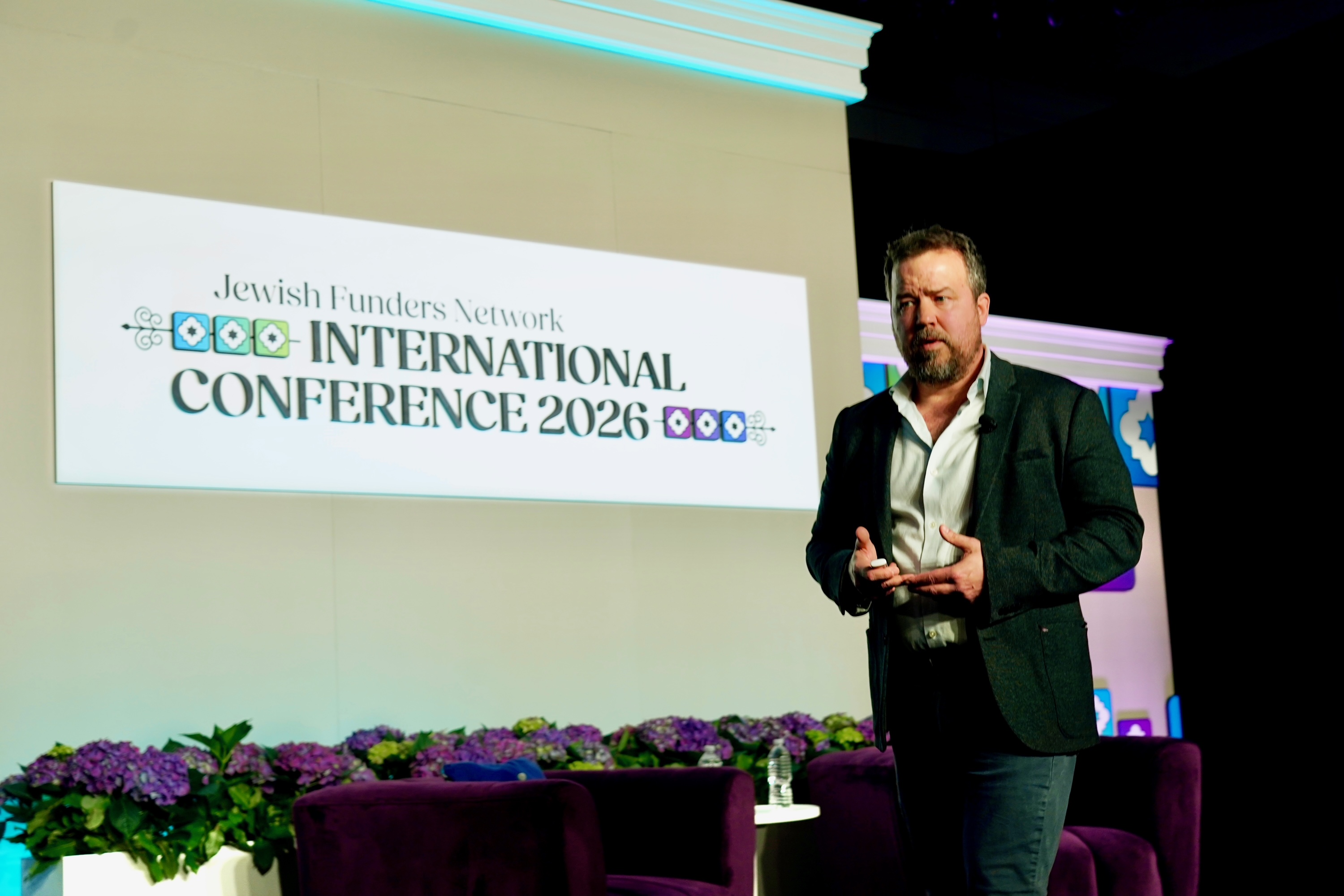 Jonathan Gottschall, literary scholar exploring the science and power of storytelling, examined how the stories we tell shape our identities as well as our conflicts. He challenged the audience to approach their own narratives with greater skepticism, arguing that division is not simply a matter of “us versus them,” but a shared human tendency to become swept up in what we believe. At the same time, he pointed to the enduring strength of the Jewish people as a testament to the power of shared narrative, suggesting that collective stories can sustain resilience across generations. He urged funders to hold fast to shared values and identity, framing storytelling as both a risk and a resource in shaping what comes next.